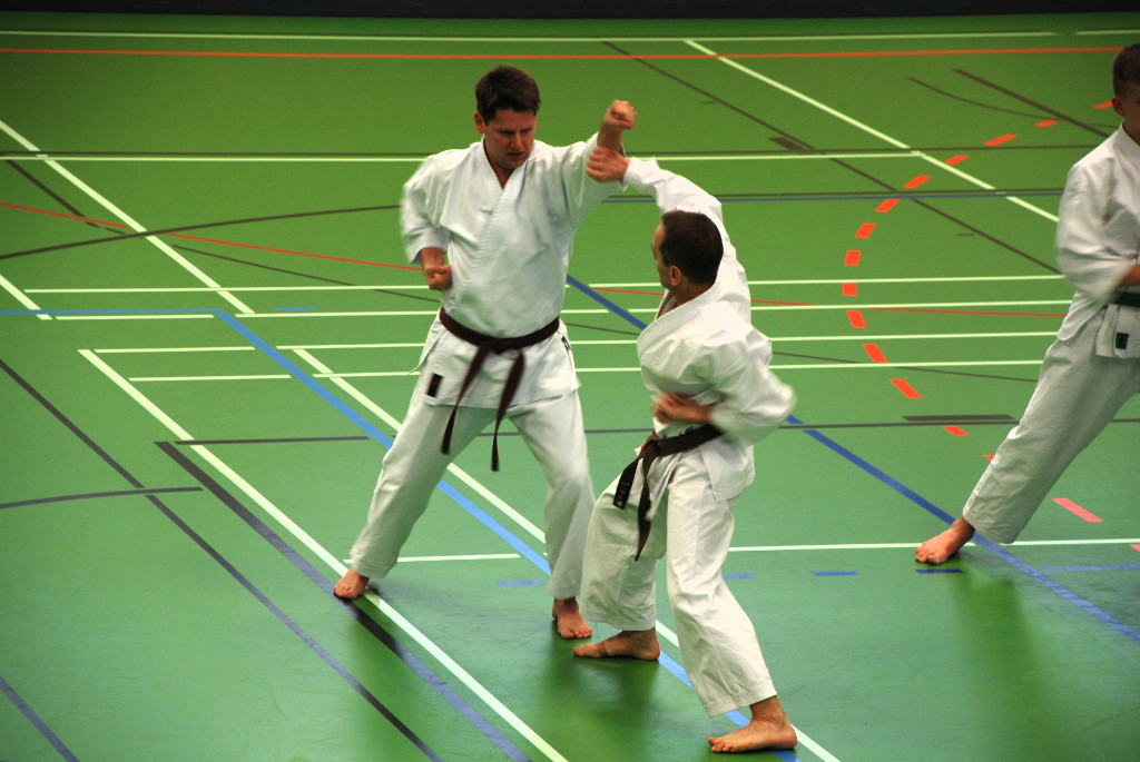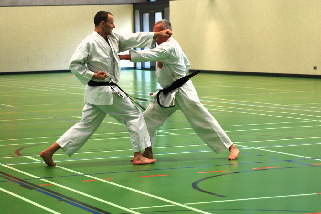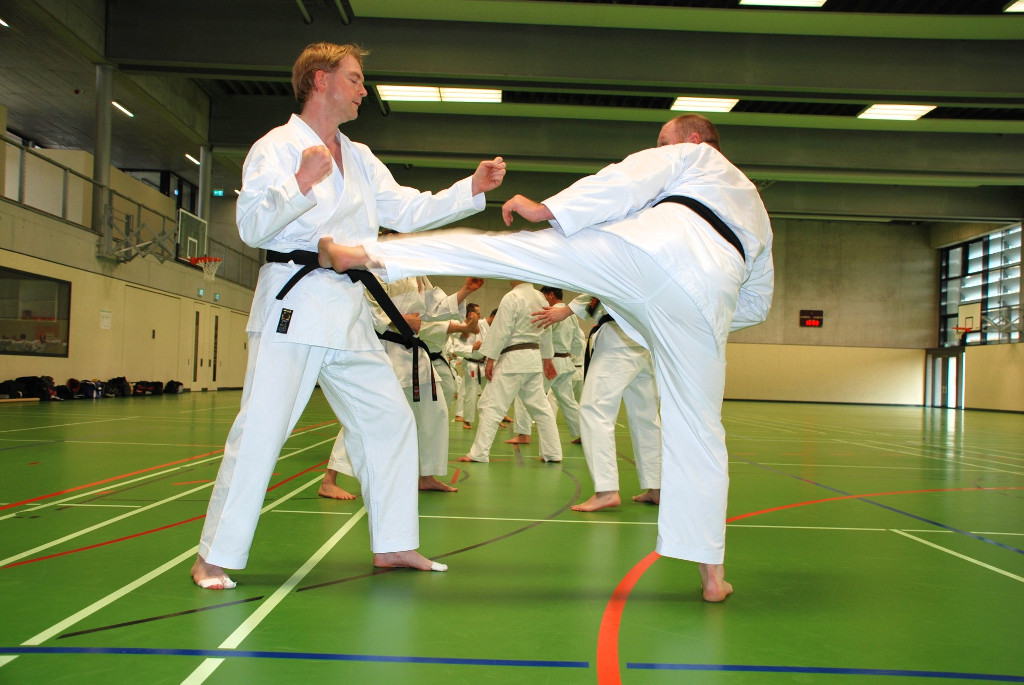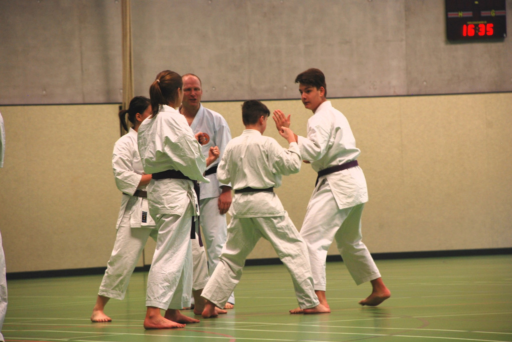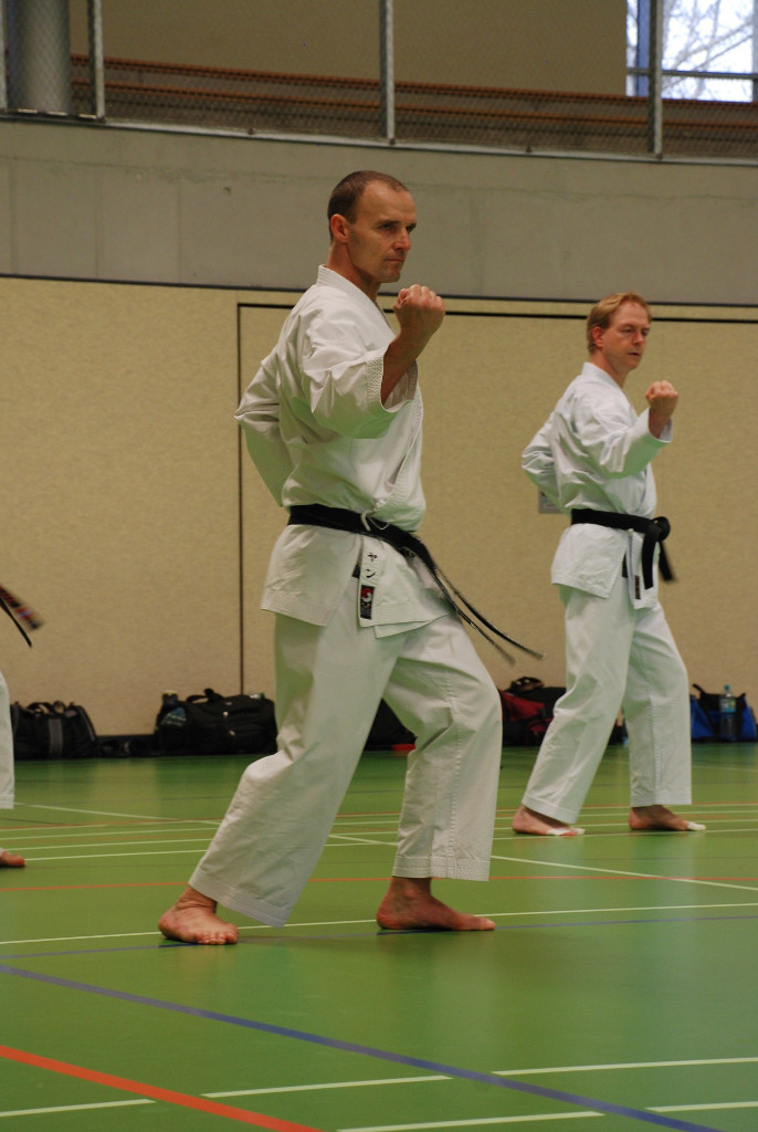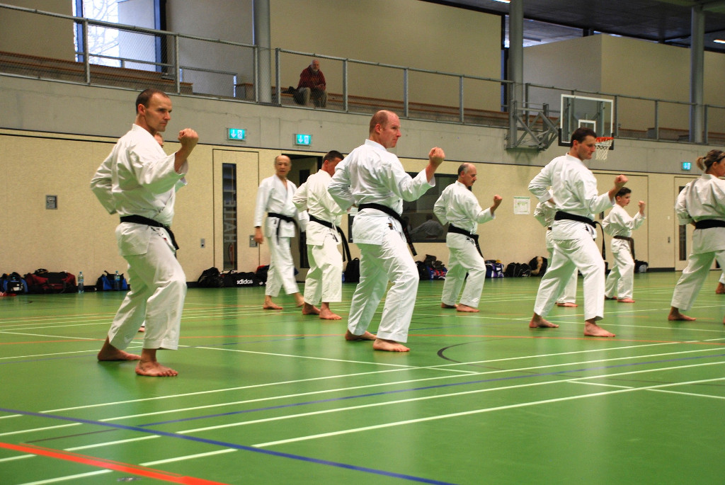 Anspruchsvoll sowohl für Körper und Geist. Da Karate nicht nur aus einzelnen Techniken und Vorwärts- und Rückwärtslaufen besteht, ließen die beiden Senseis die Teilnehmer wieder viele Kombinationen und Übungen aus Kihon und Kumite ausführen. Ziel ist es die Flexibilität und Auffassungsgabe des Karateka zu trainieren. In den anschließenden Kata-Sessions ging es wiederum um Korrektheit und Verständnis bei der Ausführung der Techniken.